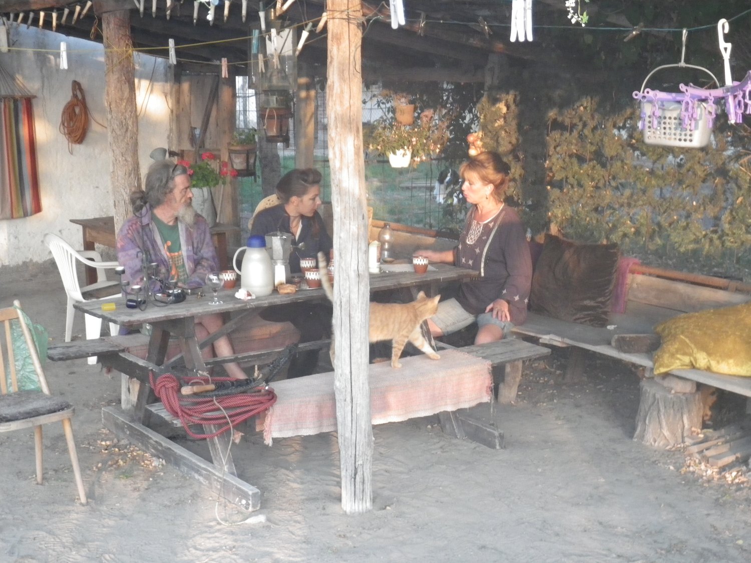 Ferenc se lave, alors que je me restaure, puis il disparaît. Je l’entends un peu plus loin faire de la musique et chanter. Beaucoup de monde dans les alentours, un cochon, des poules, plusieurs chevaux attachés un peu plus haut.